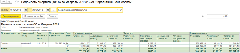 - начисление амортизации ОС, НМА по амортизационным группам и в целом по кредитной организации;