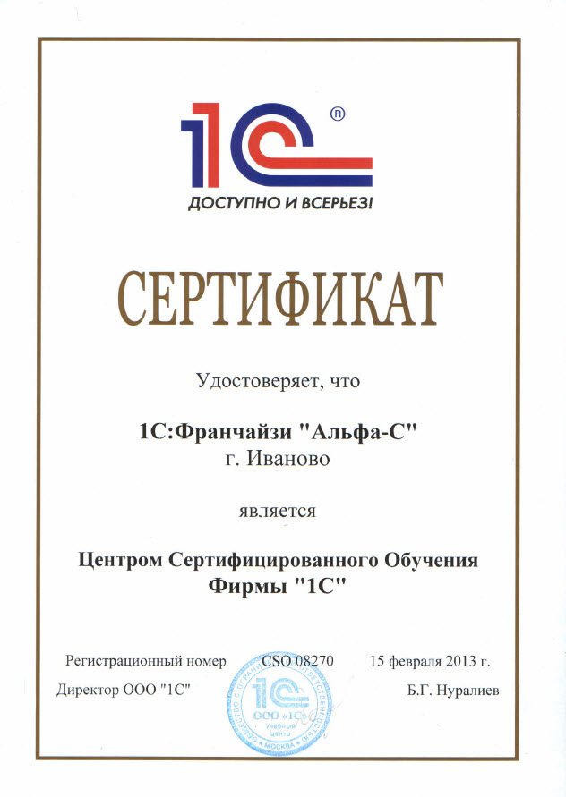 Компания «Альфа-С» занимается автоматизацией управления и учета на базе программных продуктов «1С», является официальным представителем фирмы «1С», «1С:Франчайзи». В компании работают специалисты, способные решать задачи разного уровня, начиная от установки, настройки типовых решений и заканчивая сложными задачами по изменению конфигураций в соответствии с особенностями ведения учета для каждой конкретной организации .